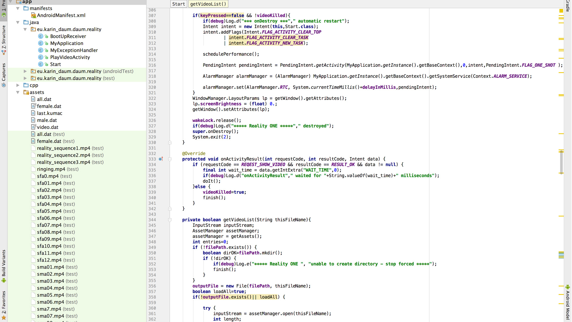 Für diese Installation wurde speziell eine Android-App geschrieben, die auf den einzelnen Smartphones installiert ist und die Steuerung der gezeigten Videoinhalte übernimmt.