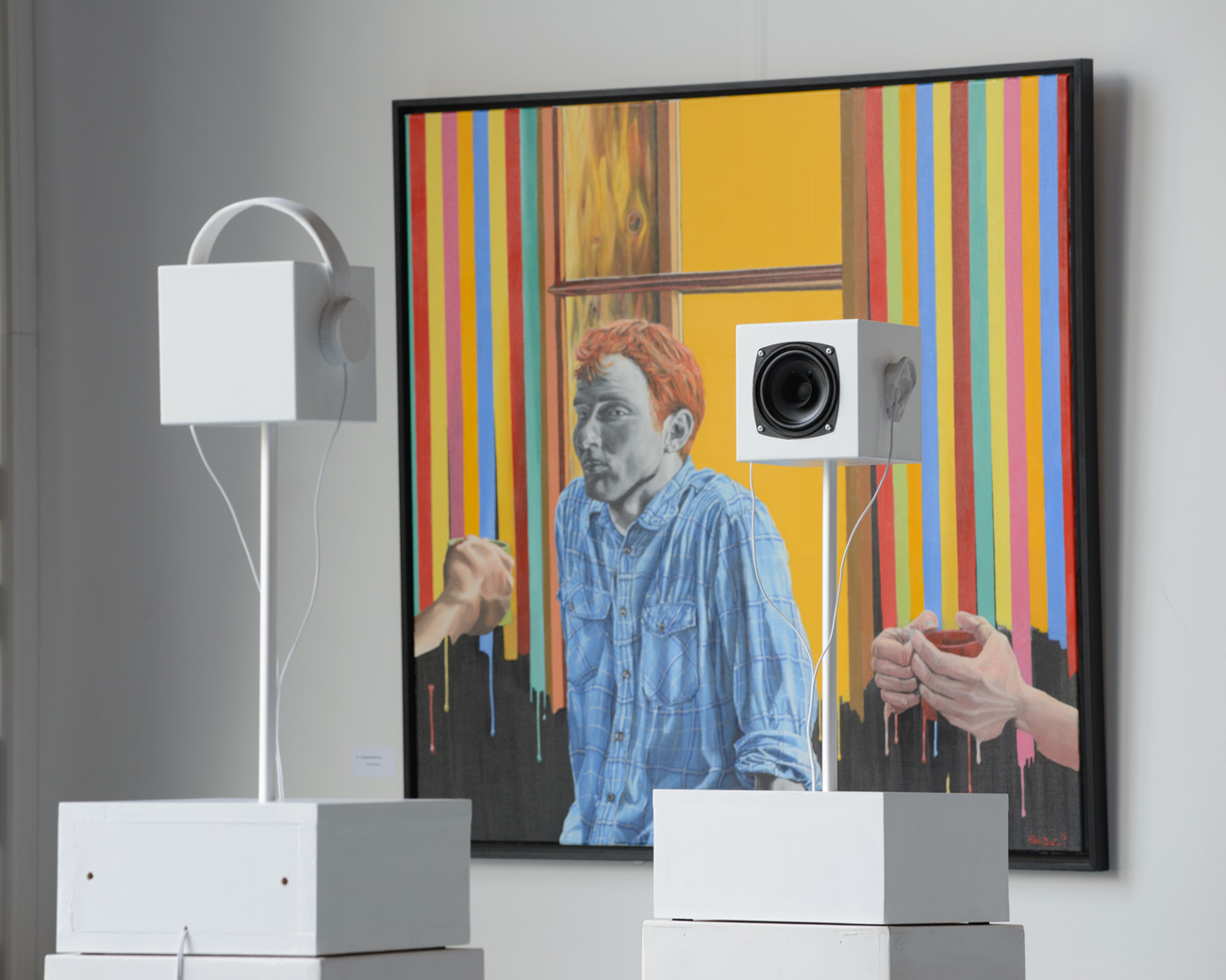"smalltalk" oder "ich mein ja nur" entstand im Rahmen der Gruppenausstellung "Fremd". In dieser Arbeit verbindet sich das Bildnerische mit Audio-Inhalten. Es ist eine Kombination von wissenschaftlichem Herangehen in Linguistik und Phonetik mit digitaler Komposition und Programmierung und Design und bildnerischem Gestalten.